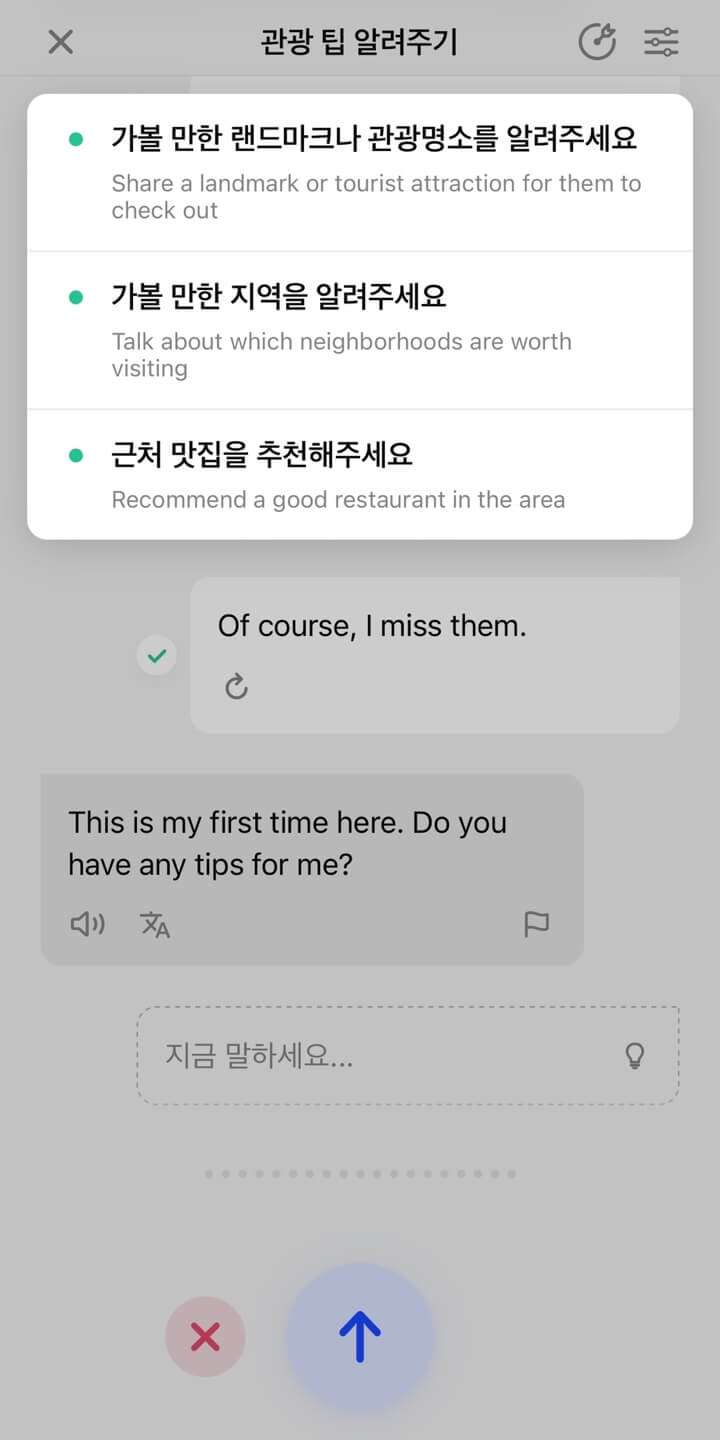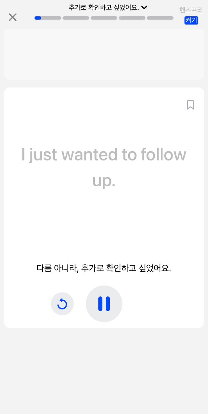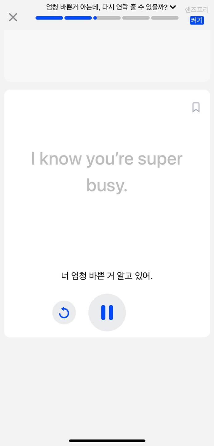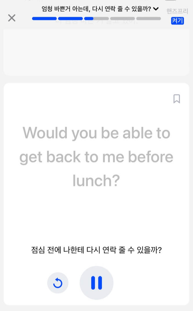 스픽의 연습 시스템은 간단합니다. 머릿속으로 번역하면 흐름상 자연스러운 대화를 이어나가기 어렵습니다. 그렇기 때문에 이런 상황에서는 이렇게 말하는 문장 자체를 외워버리는 게 가장 좋습니다.