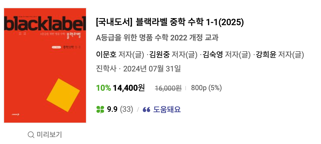 블랙라벨은 수학학원 탑반에서 교재로 자주 사용되는 책입니다. 많이 들어봐서 그런가 익숙하네요.