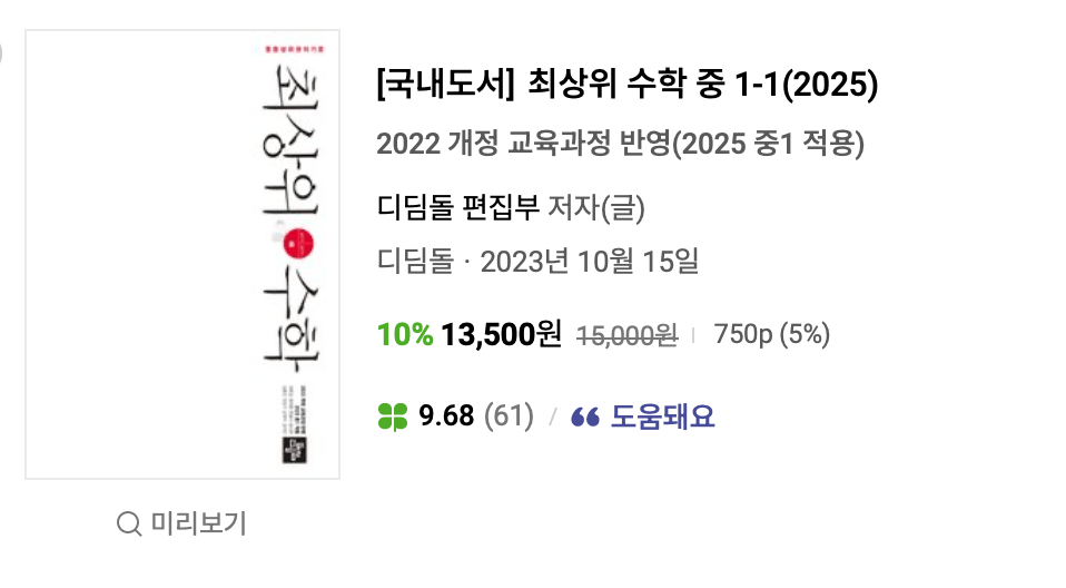 디딤돌의 유명한 교재인 최상위 수학은 여기서도 빠지질 않네요. 유형을 끝낸 뒤 심화로 준비하시는 분들이 많습니다.