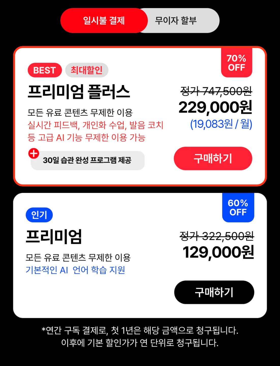 일반 프리미엄 구독권을 구매하시는 굳이 프로모션 기간이 아니라도 아무 때나 공부를 시작하셔도 됩니다. 수많은 프로모션을 경험하고 드리는 말씀이니 믿으셔도 됩니다.