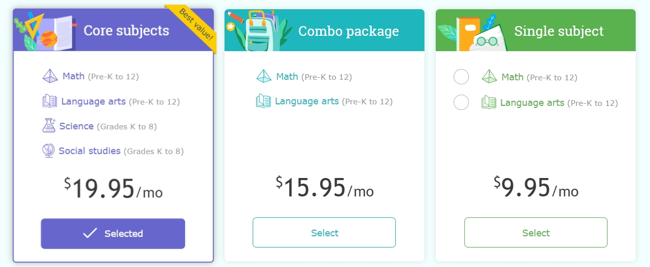 1년 결제 가격은 8개월치에 불과한 가격으로 79불에 불과합니다. 하지만, 섣부르게 1년치 결제하지 마시고 자녀의 반응에 따라 장기결제를 꼭 선택하시길 바랍니다. 저도 종종 속은 적이 많습니다.