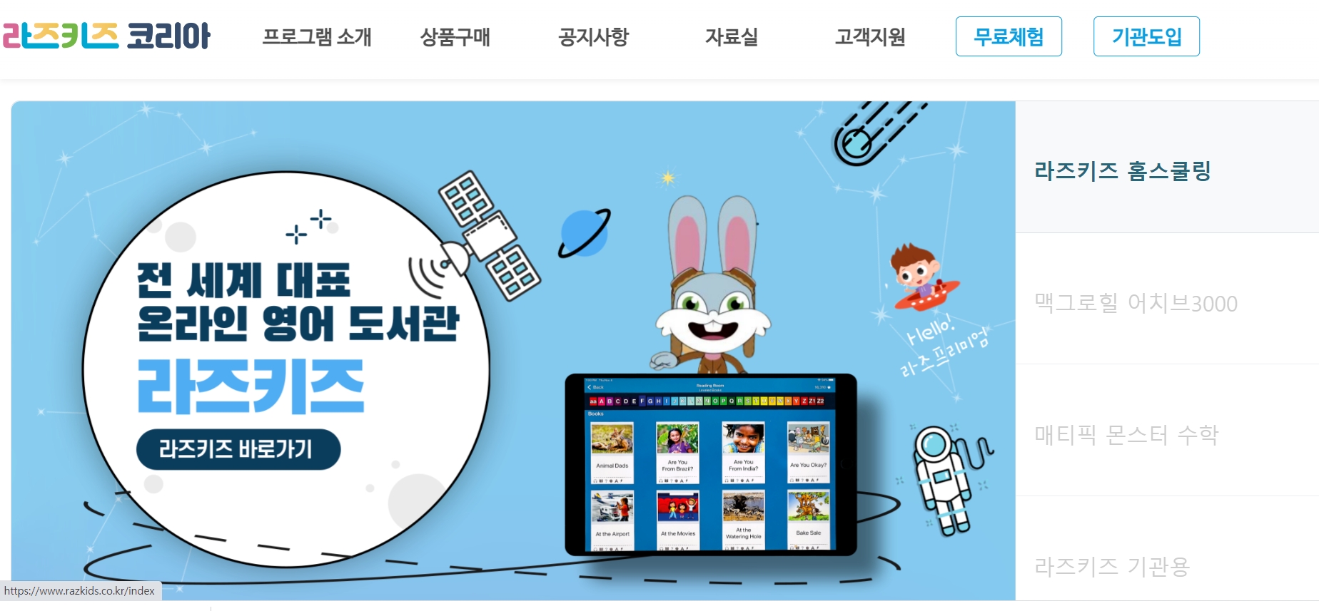 파닉스를 떼었다면, 엄마표 영어 그다음단계로 넘어가게 됩니다. 바로 라즈키즈인데요. 파닉스가 어느 정도 학습되었다면 리딩을 통해서 이를 연습하는 과정입니다. 저희 큰 애는 IXL를 거쳐 라즈키즈를 3년 정도 학습한 바 있습니다. 매일 3가지의 이야기를 듣고 따라 하고 읽는 연습을 통해서 영어실력을 키워갈 수 있었습니다.